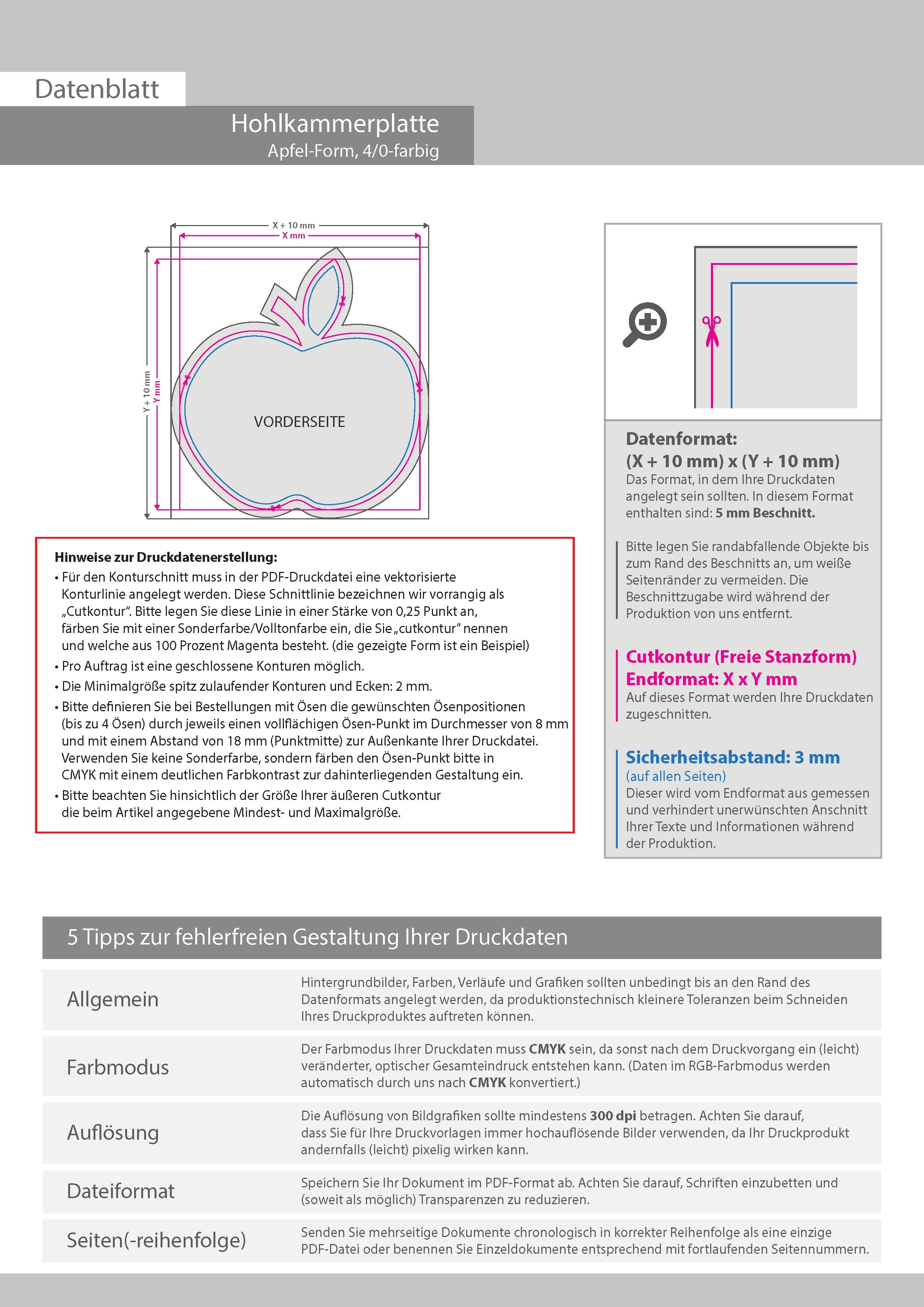 Druckdatenskizzen in der Übersicht: