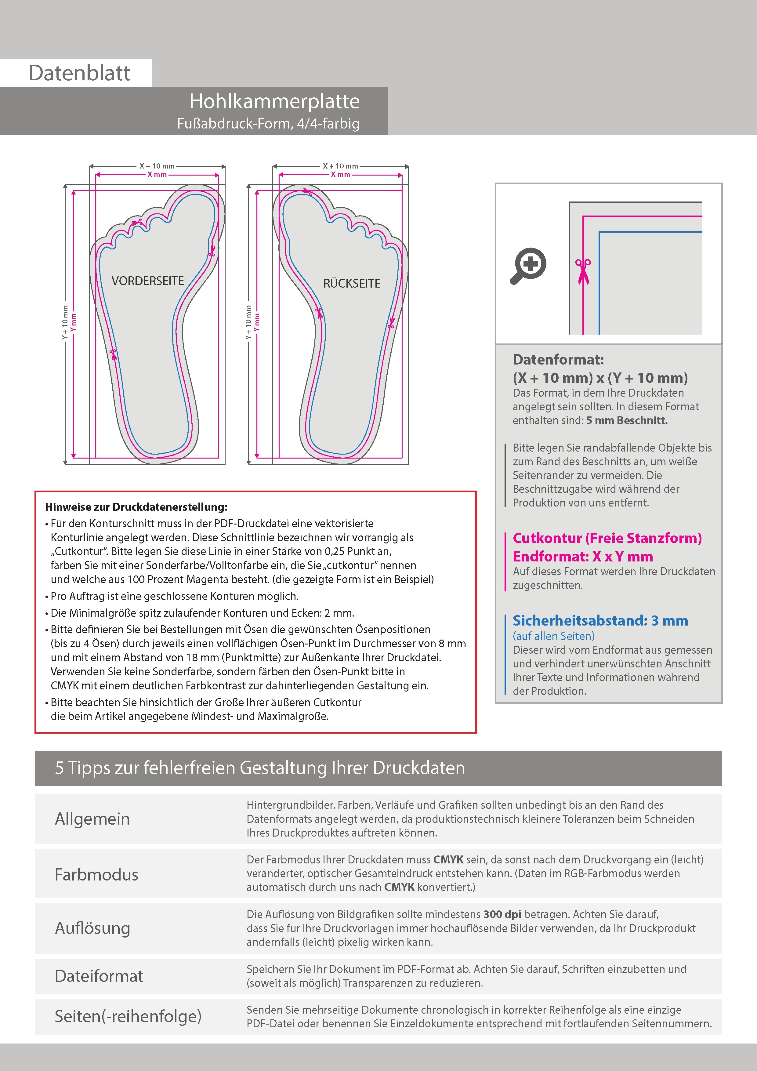 Hohlkammerplatte in Fußabdruck-Form konturgefräst