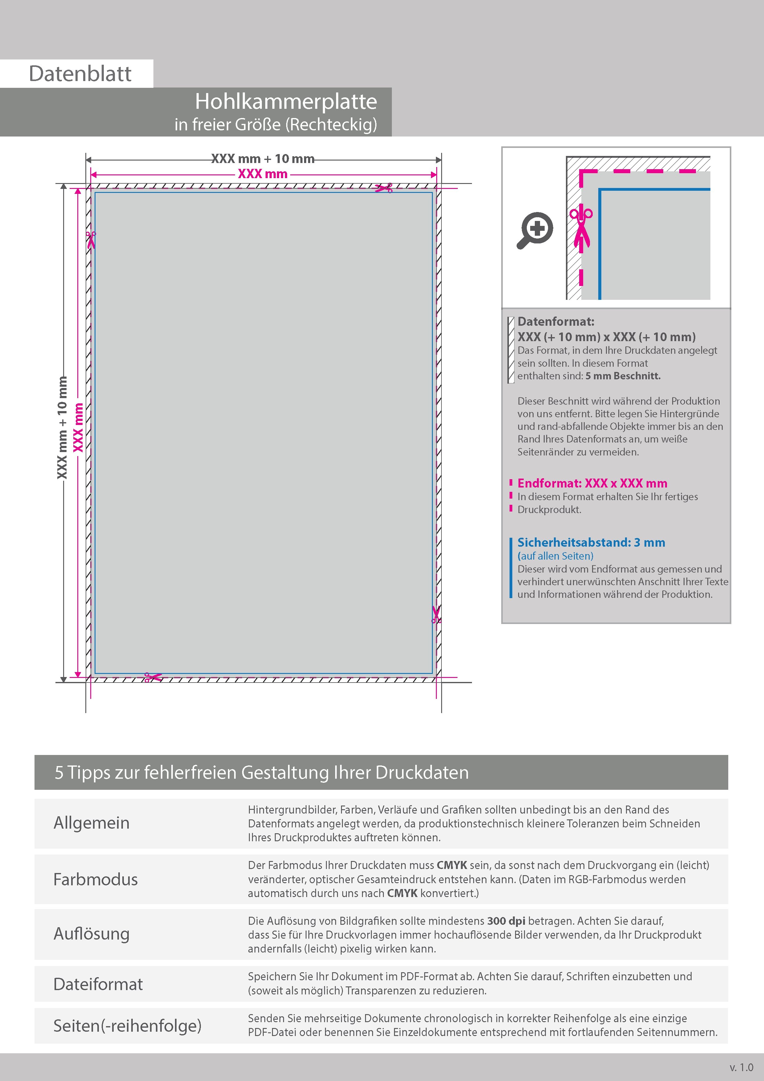 Hohlkammerplatte mit freier Größe (rechteckig) im Kleinformat ab 1 x 1 cm einseitig 4/0-farbig bedruckt