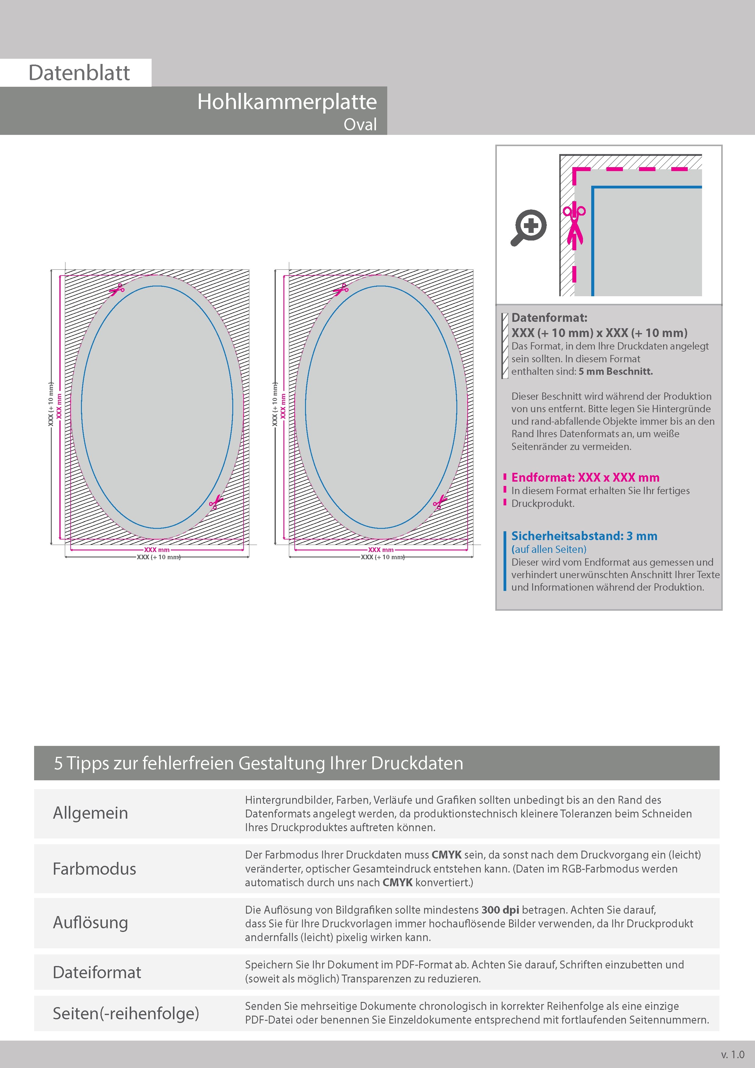 Hohlkammerplatte oval (ovale Kontur) im Kleinformat ab 1 x 1 cm beidseitig 4/4-farbig bedruckt