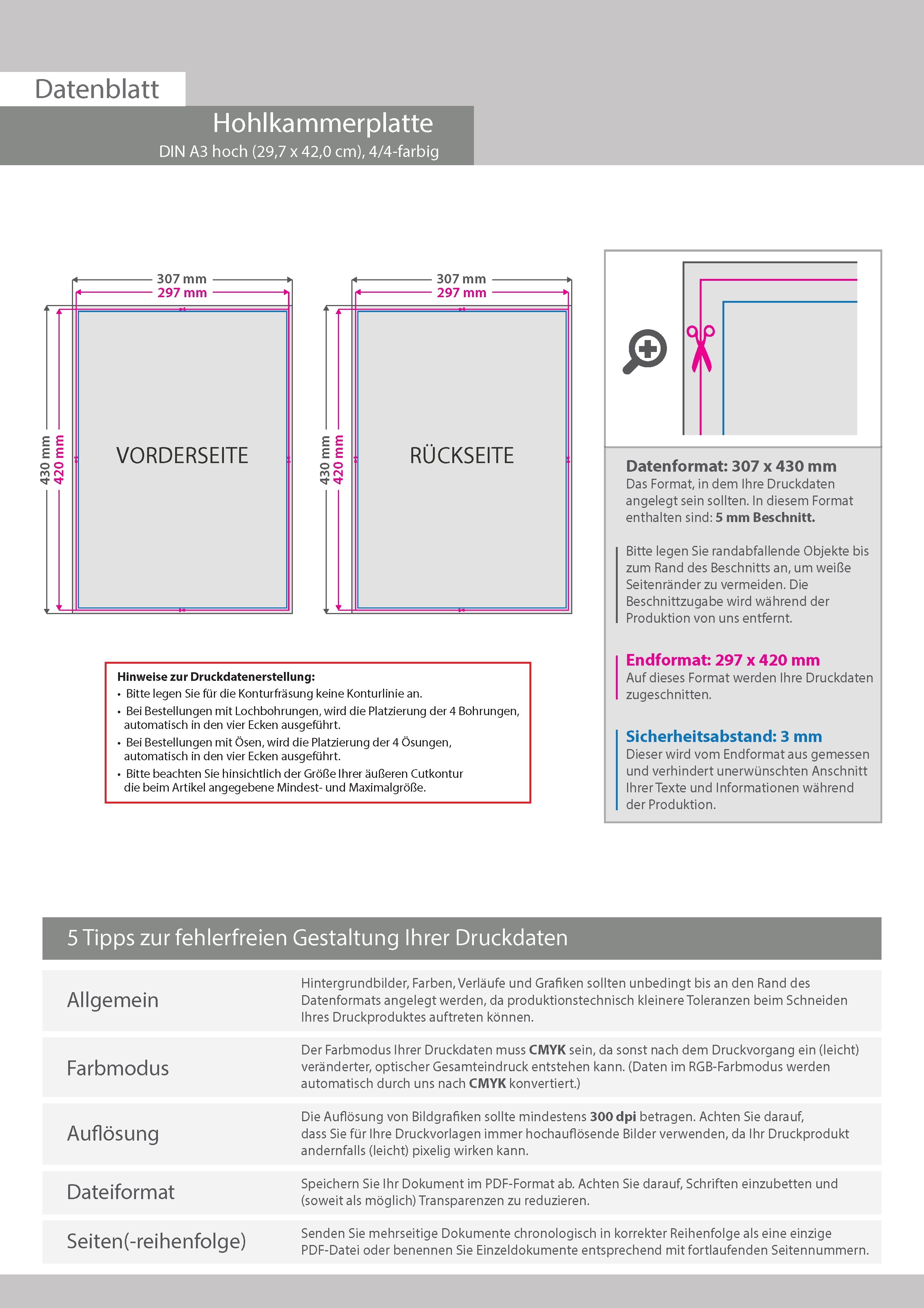 Hohlkammerplatte DIN A3 hoch (29,7 x 42,0 cm), 4/4-farbig bedruckt