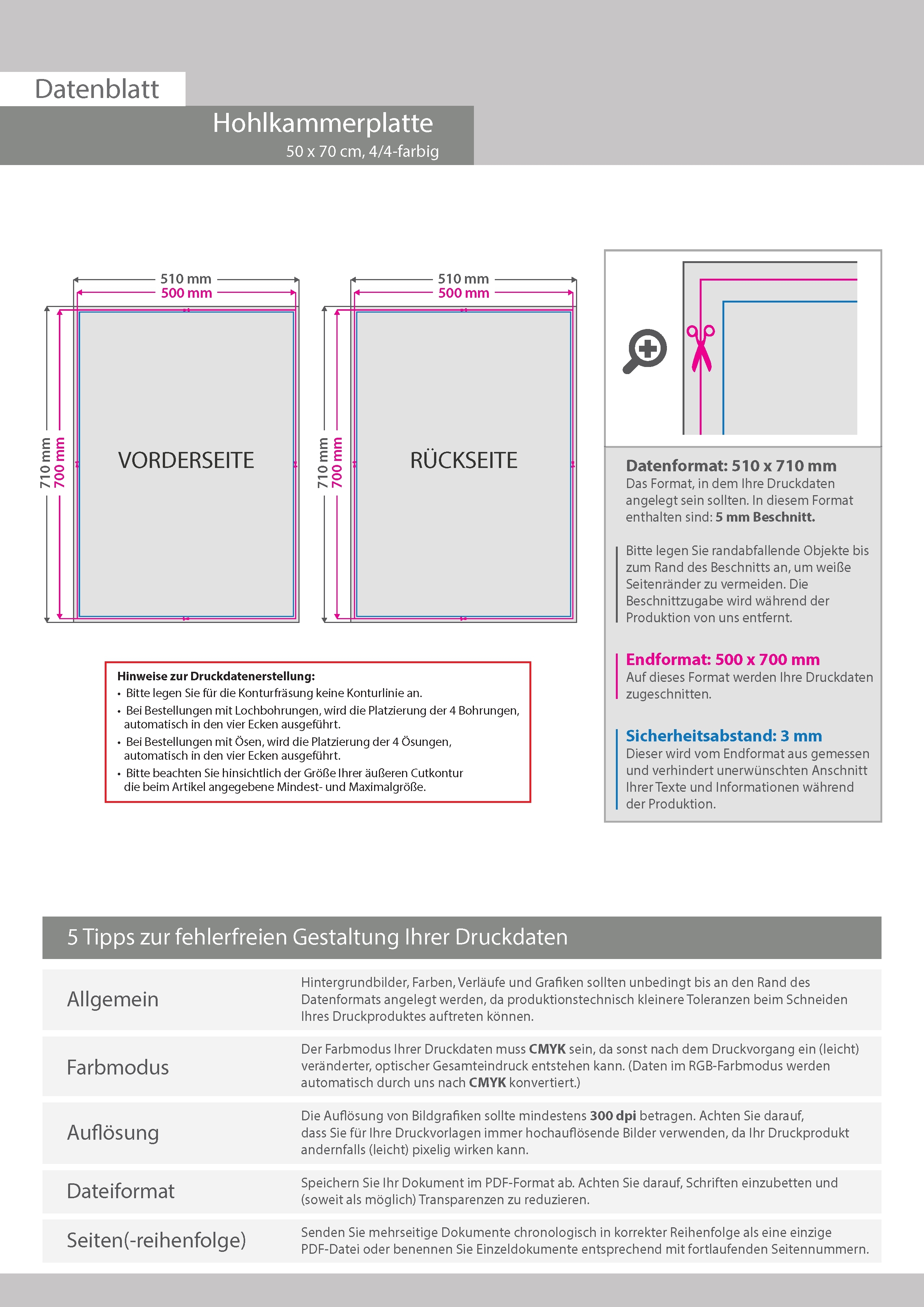 Hohlkammerplatte (50 x 70 cm), 4/4-farbig bedruckt