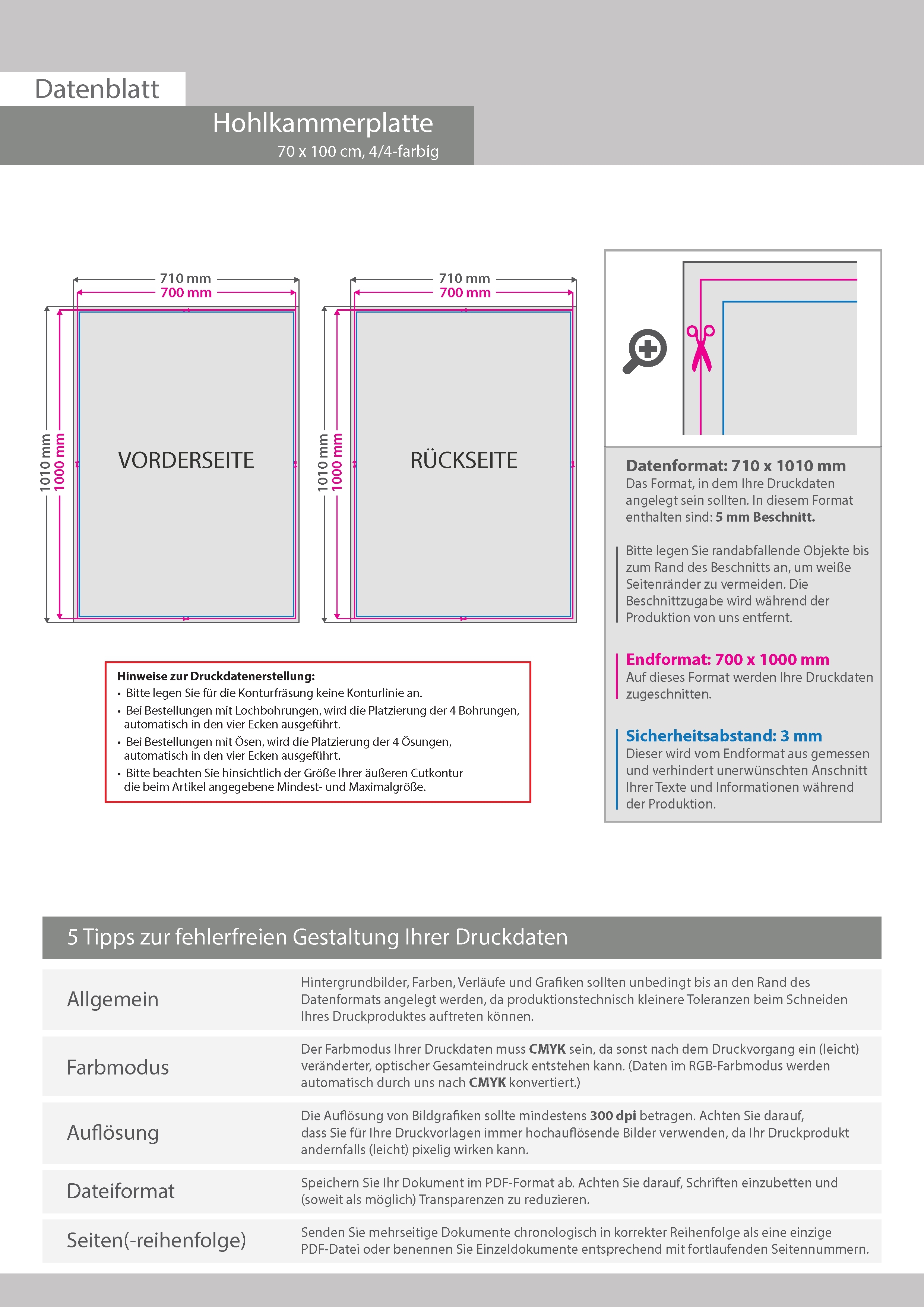 Hohlkammerplatte (70 x 100 cm), 4/4-farbig bedruckt