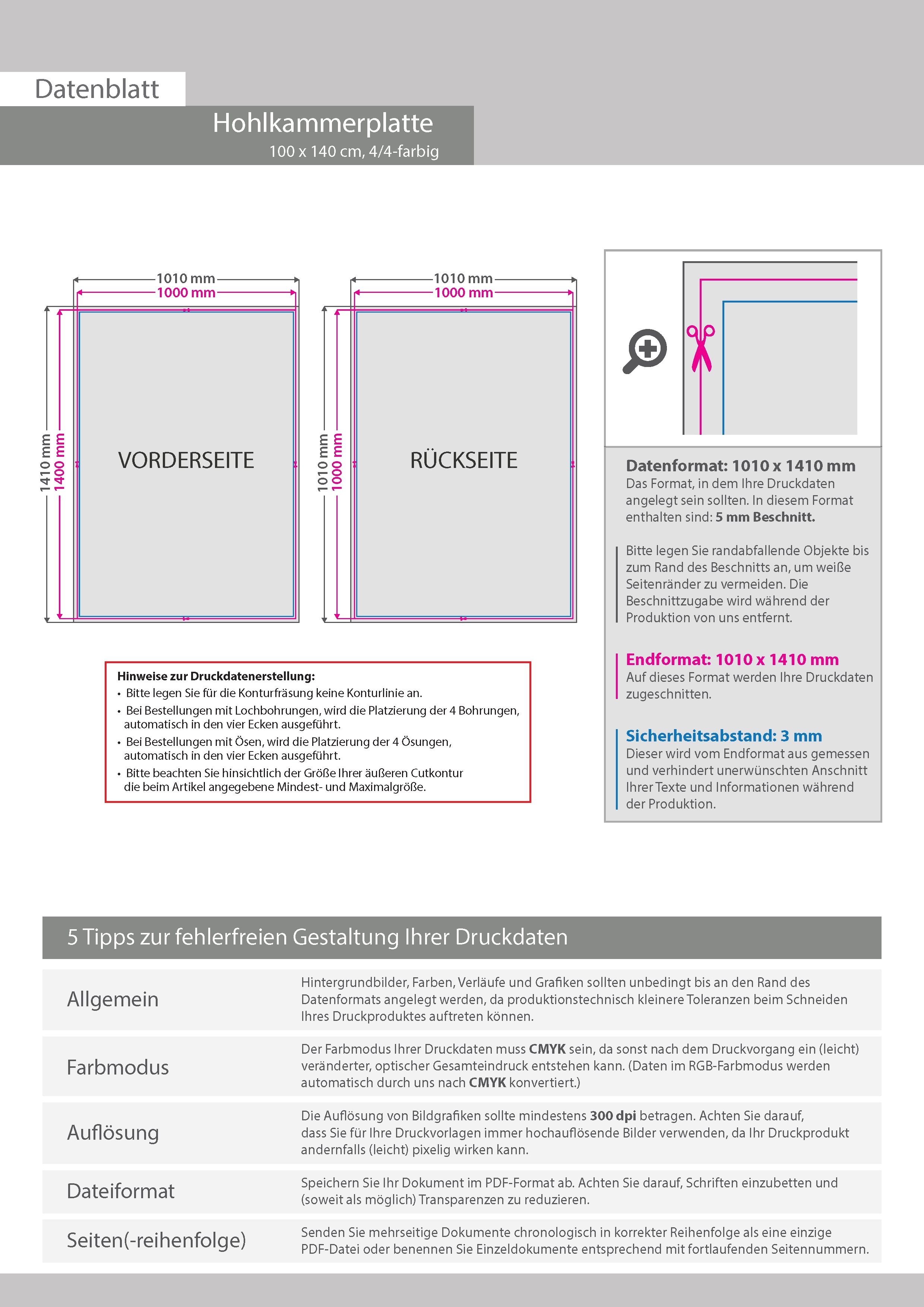 Hohlkammerplatte (100 x 140 cm), 4/4-farbig bedruckt