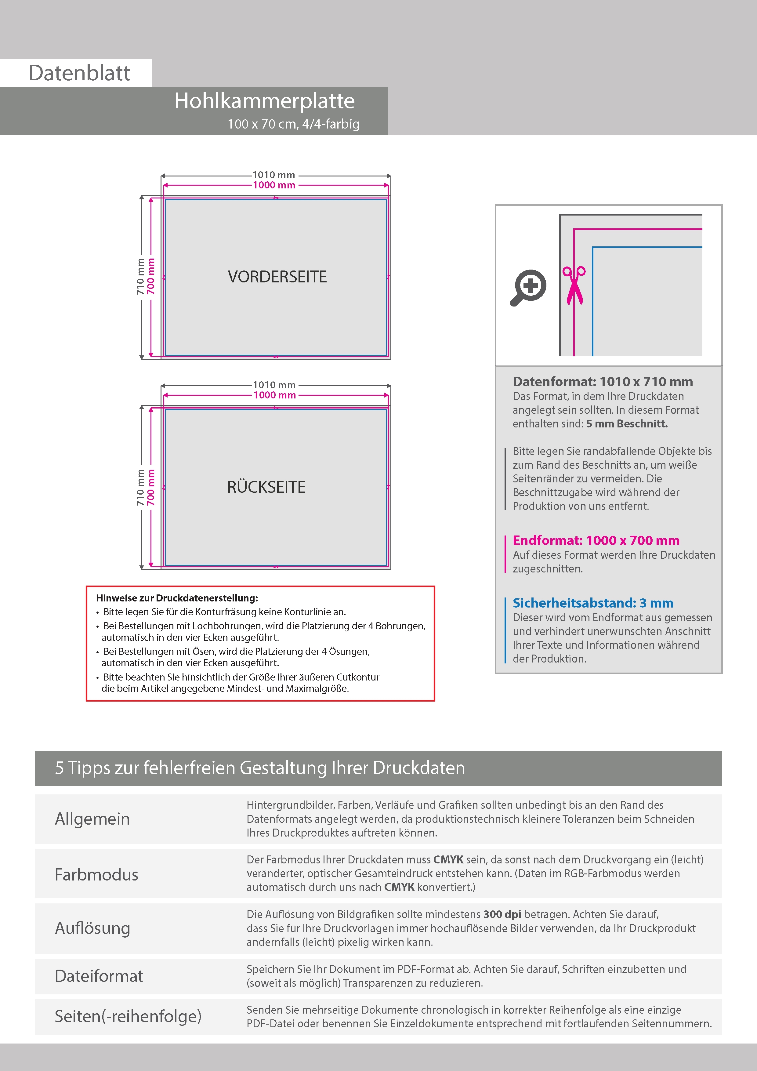 Hohlkammerplatte (100 x 70 cm), 4/4-farbig bedruckt