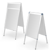 Hochwertige, silber eloxierte, doppelseitige Kundenstopper und Plakatständer mit Alu-Schnellwechselrahmen, Metallrückwand sowie zwei UV-stabilisierten und entspiegelten Schutzfolien. Das Austauschen der Plakate ist durch den komplett hochklappbaren Rahmen spielend einfach. Mit diesen hochwertigen Kundenstoppern erreichen Sie die volle Aufmerksamkeit Ihrer Kunden, und das zu sehr günstigen Preisen.